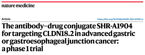 EVO医药CLDN18.2 ADC创新药SHR-A1904治疗胃癌临床研究结果荣登Nature Medicine